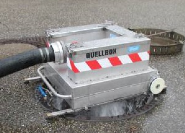 Stabilisiert das Schlauchende beim Spülen von Unterflur- oder Überflurhydranten, und verteilt den Druck und die große Wassermenge in eine beruhigte Softform wie bei einer natürlichen Quelle. Durch die Zusatzoption mit den Standrohrfüßen und dem Deckel kann die Quellbox über einen Schacht platziert werden. Dadurch wird das Spülwasser umgekehrt direkt in den Schacht abgeleitet, gleichzeitig wird der Kanal kräftig durchgespült. Dabei bleibt die Strasse (Vorteil im Winter) nahezu vom Spülwasser frei