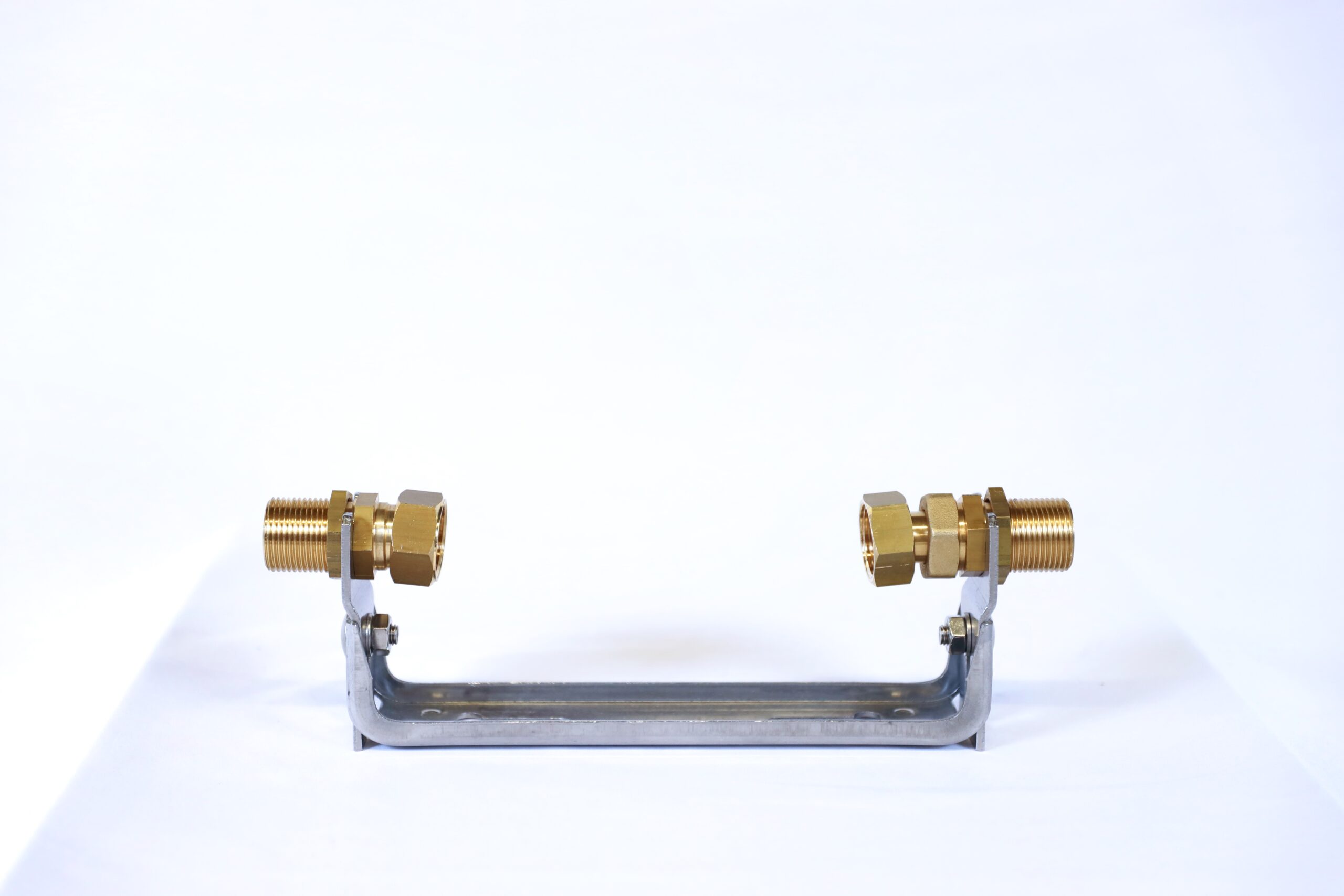 Wasserzähler-Anschlußgarnitur für WZ Q3=10 (Qn 6) aus Edelstahl, waagerecht, verstellbar, Anschlußverschr. 1 1/2″ x 1 1/2″ AG